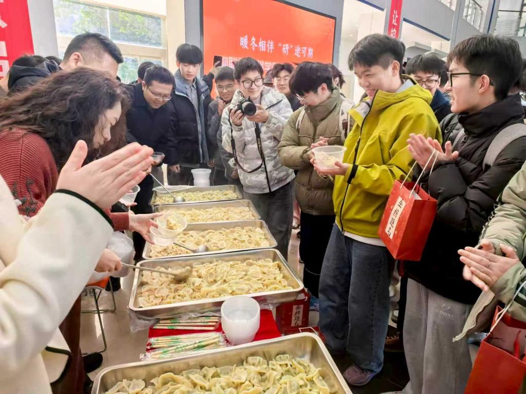 领导和老师们为考研学子分发了热腾腾的饺子,饺子寓意“骄子”,愿同学们能够不惧困难,踏实前行,终成“骄子”。
