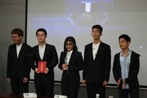 最终,正方冷静分析队获得了比赛的胜利,反方一辩同学获得了最佳辩手的称号。随后辅导员杜磊老师进行总结发言,嘉宾为获奖队伍颁发荣誉证书和礼品。