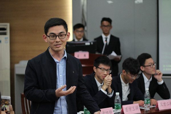 此次决赛的辩题为“灾难中的自私自利应不应该收到谴责”。在双方辩手自我介绍后,辩论赛正式拉开了帷幕。比赛共分为开篇陈词,攻辩,自由辩论,总结陈词四个阶段。首先由正方一辩开篇陈词立论,他沉着冷静,娓娓道来,充分展现了其冷静分析队的特点。反方一辩以“灾难中的行为判断多为本能”以及“灾难中的道德标准与和平社会道德标准不对等”作为论点展开阐述;正方四辩面对反方一辩的论点,提出“神经病违法不受法律制裁”的例子巧妙反驳。攻辩环节中,反方二辩机智发问,一句“自私从何而来”使得正方辩手一时语塞,博得观众热烈的掌声。三辩质询环节,正方三辩质询反方一二四辩时步步紧逼,言语激昂,反方从容淡定,一一化解。而到了自由辩论环节,可以说是本场的高潮部分,正反双方言辞犀利,就辩题展开论述,火花四溅,选手们的口才和应变能力在这一环节上展现的淋漓尽致。期间,正方幽默诙谐的言辞也迎来了阵阵掌声。比赛最后,正反方四辩分别进行了总结陈词,双方选手引经据典,用灵活的思维和缜密的逻辑推理赢得了在场观众和评委老师的阵阵掌声。接着评委提问,双方辩手紧扣思路对评委的问题进行了回答,然后所有评委退席评判,讨论结果,进行点评。