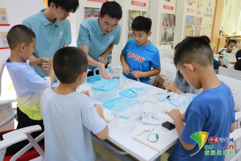 同时“芯”智启航实践团将芯片技术与环保理念深度耦合,生动具象“科技向善”的深层逻辑。在生命之水的课堂上,实践团成员通过讲述水的特性、水与生命、水与生活让孩子们深入体会到水资源的珍贵以及节约水资源的必要性。在垃圾分类课堂上,孩子们在实践团的讲解中认识到垃圾数目的巨大以及垃圾处理的不易,并通过有趣的垃圾分类互动小游戏加深对垃圾分类的认识。与此同时,在实践团成员的帮助下,孩子们组装节水水龙头和感应垃圾桶装置,成功实现"伸手出水,离手即停"感应出水以及“自动开盖,延时关盖”智能控制,直观展示科技对环保的支撑作用。当孩子们亲手触摸到会“思考”的垃圾桶、会“听话”的水龙头,科技知识不再是书本上的文字,绿色环保不再是口头的倡导,科技的魅力与环保的意义便一同住进了他们的心里。、